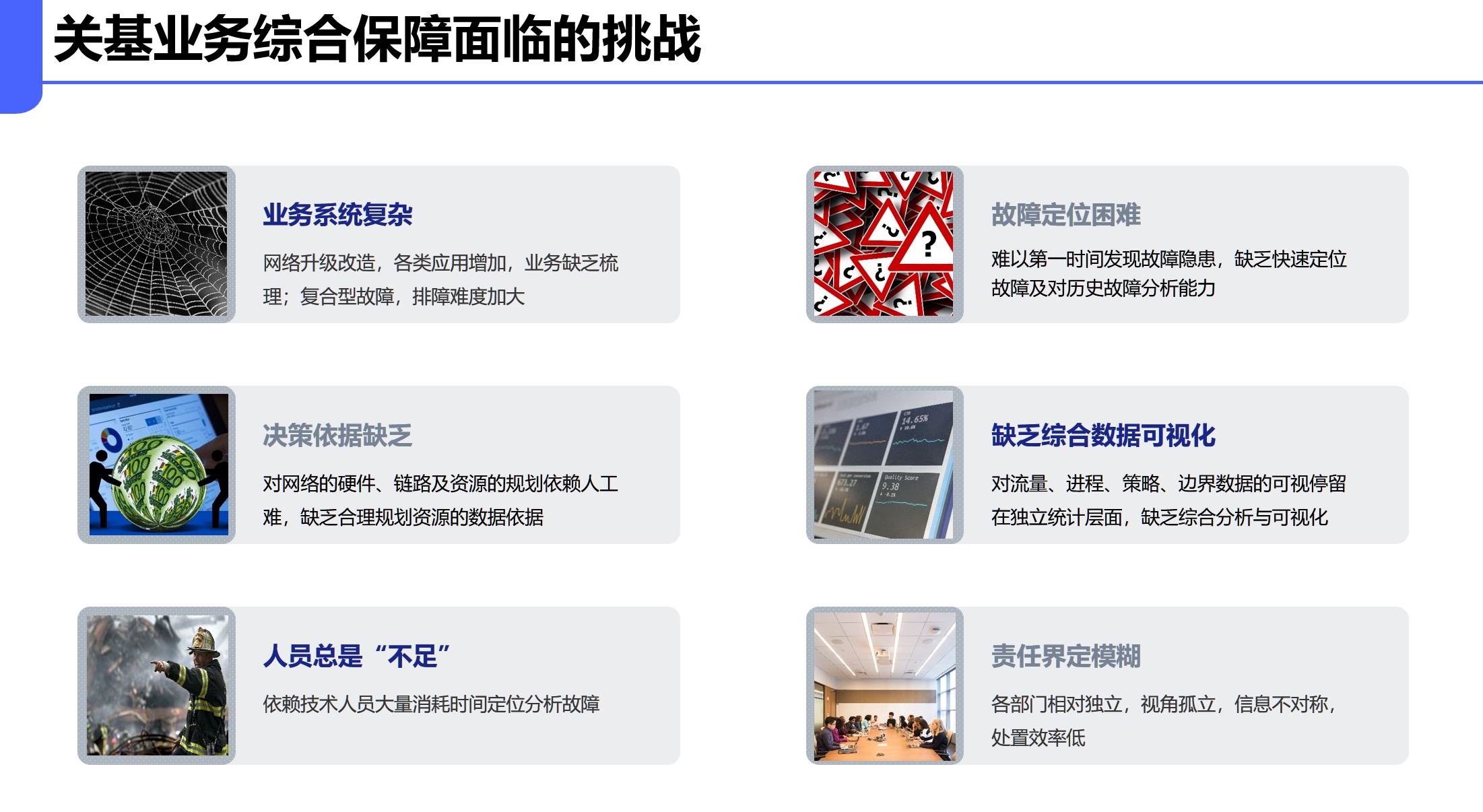 重要信息系统安全运行保障平台具有“高精度的事前预警、高可信的事中响应、高清晰度的事后分析”能力,采用网络流量、主机服务器内部进程、业务访问策略关系、系统准入准出与违规外联等数据,使用多源数据交叉分析验证与实时跟踪研判技术方法,压实系统管理与运维各方责任,解决重要信息系统安全运行管理工作的痛点。产品适用于重要信息系统,实现“业务综合安全保障”,提升重要信息系统运营单位业务安全保障能力。